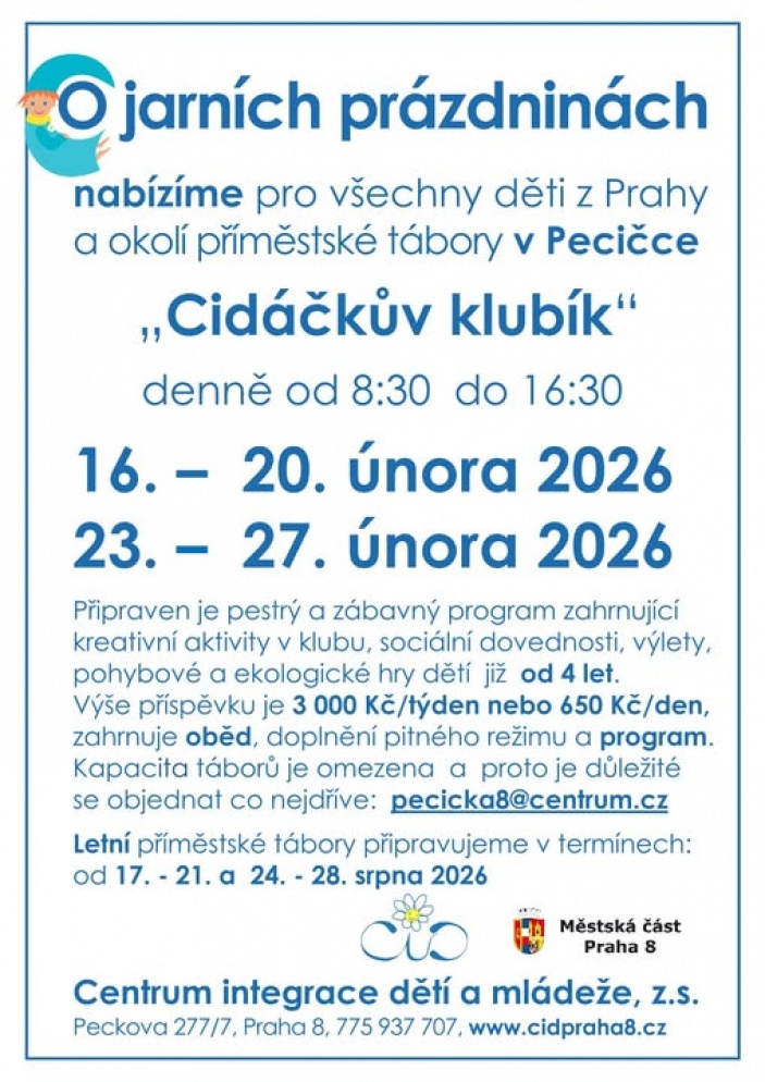 Praha, 16.-27.2.: Pozvání do Karlína na příměstské tábory (oba termíny jarních školních prázdnin).