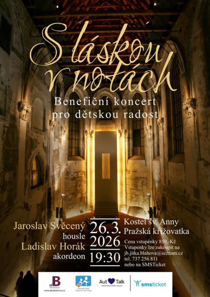 Praha, 26.3.: Zakoupením vstupenky přispějete na mateřskou a základní školu speciální Diakonie v Praze 4, která se zaměřuje na vzdělávání a výchovu dětí s mentálním postižením, více vadami a autismem.