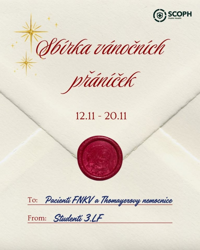 Praha, do 20.11.: Sbírka vánočních přáníček pro pacienty, co tráví svátky ve FNKV a Thomayerově nemocnici.