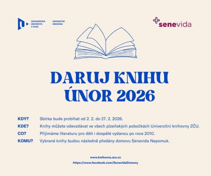 Plzeň, 2.-27.2.: Nové knihy nebo knihy v dobrém stavu vydané po roce 2010 můžete nosit do všech plzeňských poboček Univerzitní knihovny ZČU.