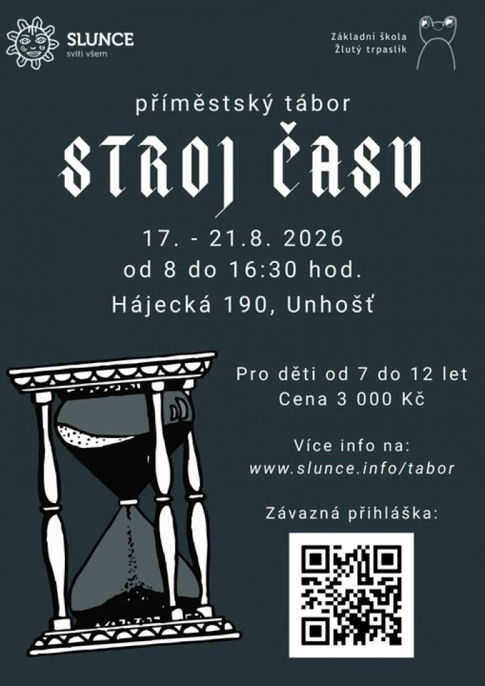 Unhošť, 17.-21.8.: Nastartujte stroj času a pošlete svého potomka na dobrodružnou cestu minulostí i budoucností – příměstský tábor Stroj času pořádaný Základní školou Žlutý trpaslík ve spolupráci se školou Slunce se koná 17.–21. 8. 2026 v Unhošti!